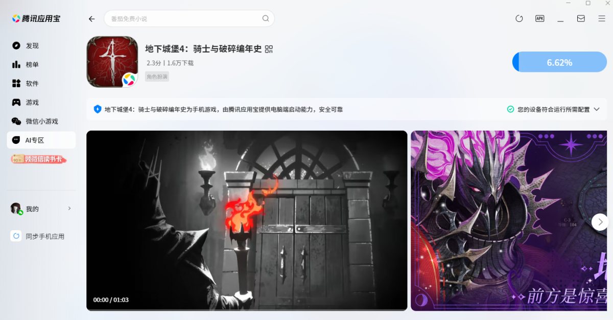 在极速下载站下载最新安装包,按提示安装应用宝(已安装会直接调用打开,未安装应用宝时,手机APP无法独立在电脑上运行),应用宝启动后会下载安装游戏,待安装完成后即可开始畅玩。