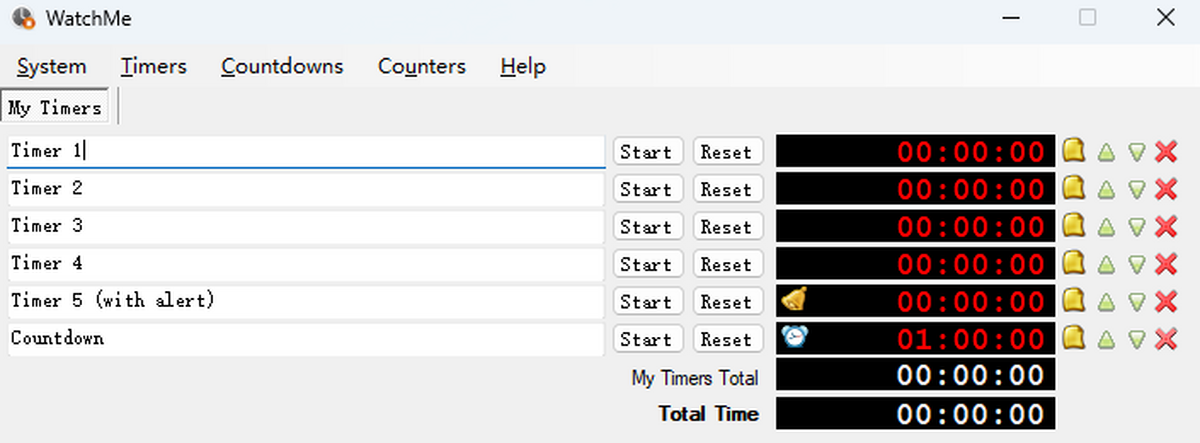 WatchMe是一个简单的计时器工具,可以用来时间多重任务或事件相互独立。可以指定一个自定义名称,找出每一个计时器。该程序可以显示时间为分钟、秒或小时,这取决于您的喜好,也可以调整时间,通过添加或删除提醒。