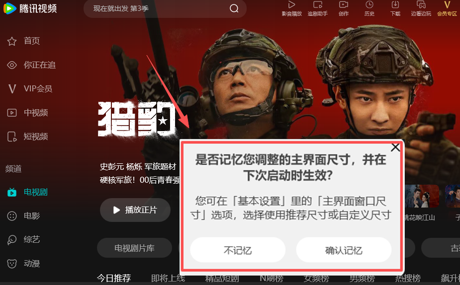 腾讯视频新推出自定义窗口尺寸设置,我们调整到合适的主界面窗口大小时,可以选择记忆当前尺寸,并且在下一次启动时生效该尺寸,而不是每次启动腾讯视频时都是默认尺寸,这让我们使用起来非常方便,优化了我们的使用体验。